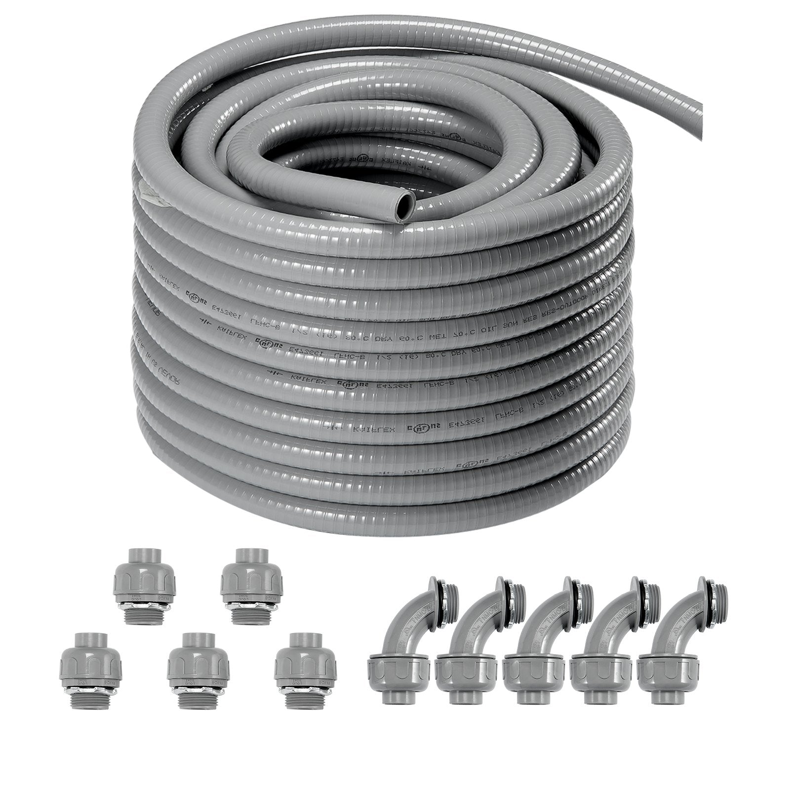 VEVOR 12.7 mm Flexible Electrical Conduit, 30.5 m, PVC Liquid-Tight Conduit Non-Metallic with 5 Straight and 5 90-Degree Conduit Connector Fittings, for Air Conditioning Motor Controller Pump, IP65