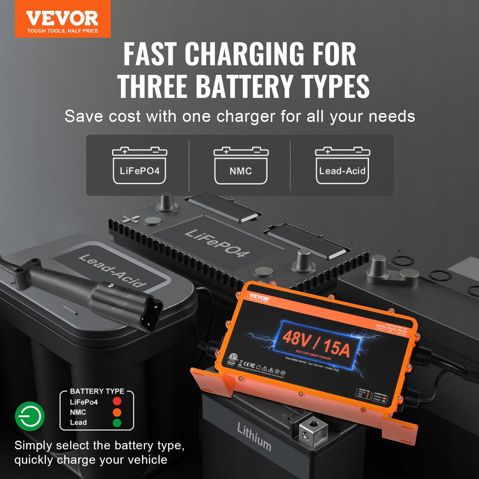 VEVOR 15 AMP Golf Cart Smart Battery Charger for Yamaha G29 Plug IP67