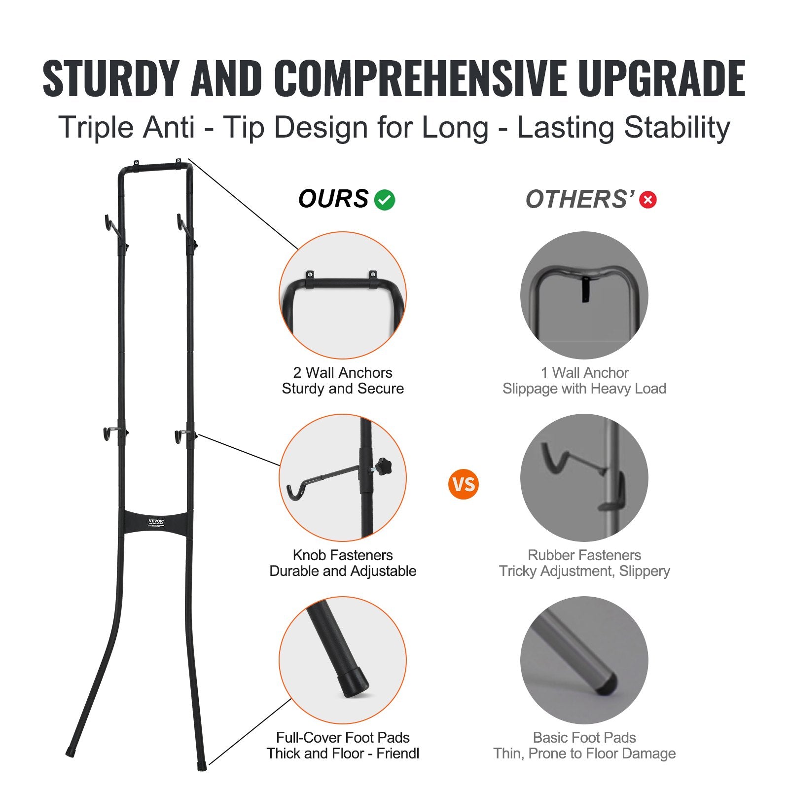VEVOR 2 Bike Storage Rack, Free Standing Gravity Wall Vertical Bike Rack, Fully Adjustable Bike Rack Garage, Sturdy Steel & Easy Assemble, for Garage, Living Room, Shed, Holds Up to 40.8KG Black
