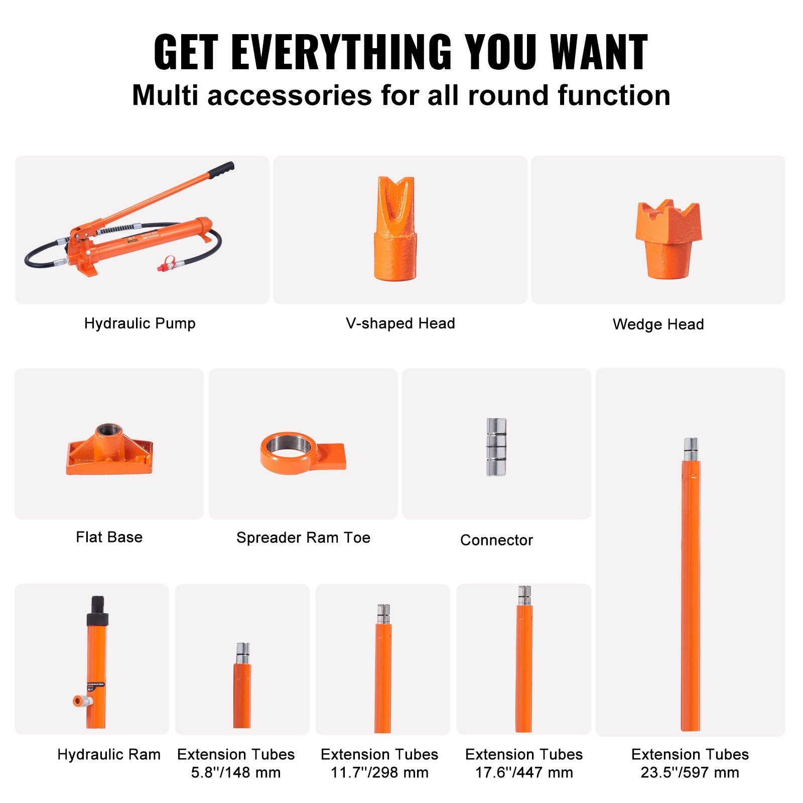 VEVOR 20 Ton Porta Power Kit, Portable Hydraulic Jack with 4.6 ft/1.4 m Oil Hose,