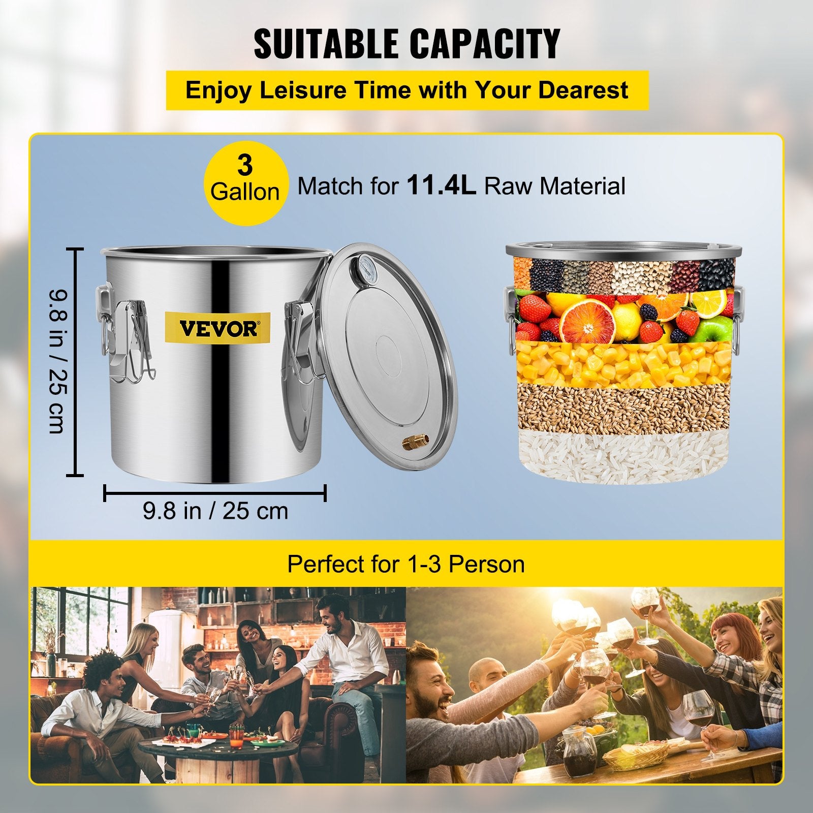 VEVOR 3 Pot 12L Alcohol Distiller Water Wine Boiler Home Brew Moonshinestill