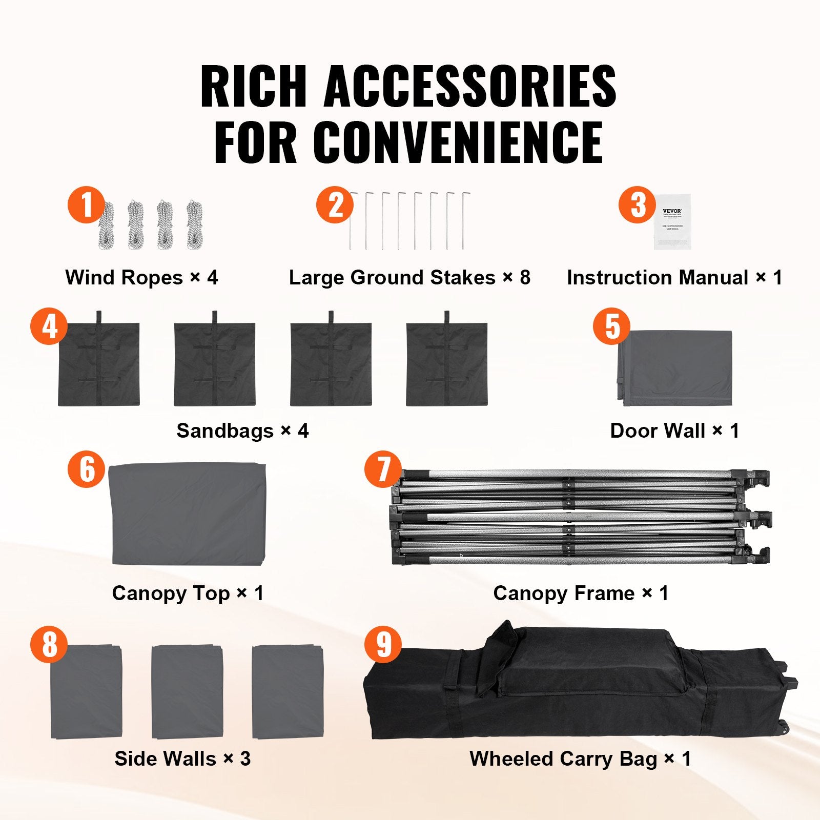 VEVOR 304.8 x 304.8 cm Pop up Canopy with Removable Sidewalls, Instant Canopies