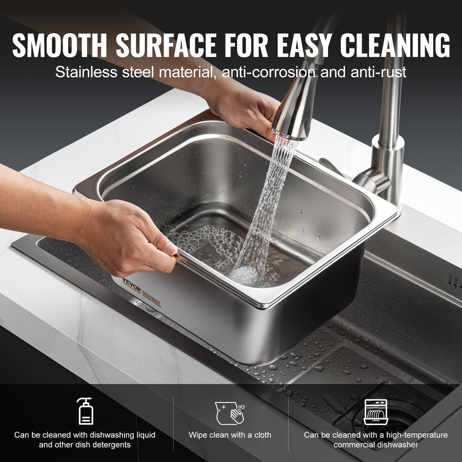 VEVOR 8 Pack Hotel Pans, 1/2 Size Anti-Jam Steam Pan with Lid, 0.8mm Thick Stainless Steel Steam Table Pan, 4-Inch Deep Commercial Table Pan, Catering Storage Food Pan, for Industrial & Scientific