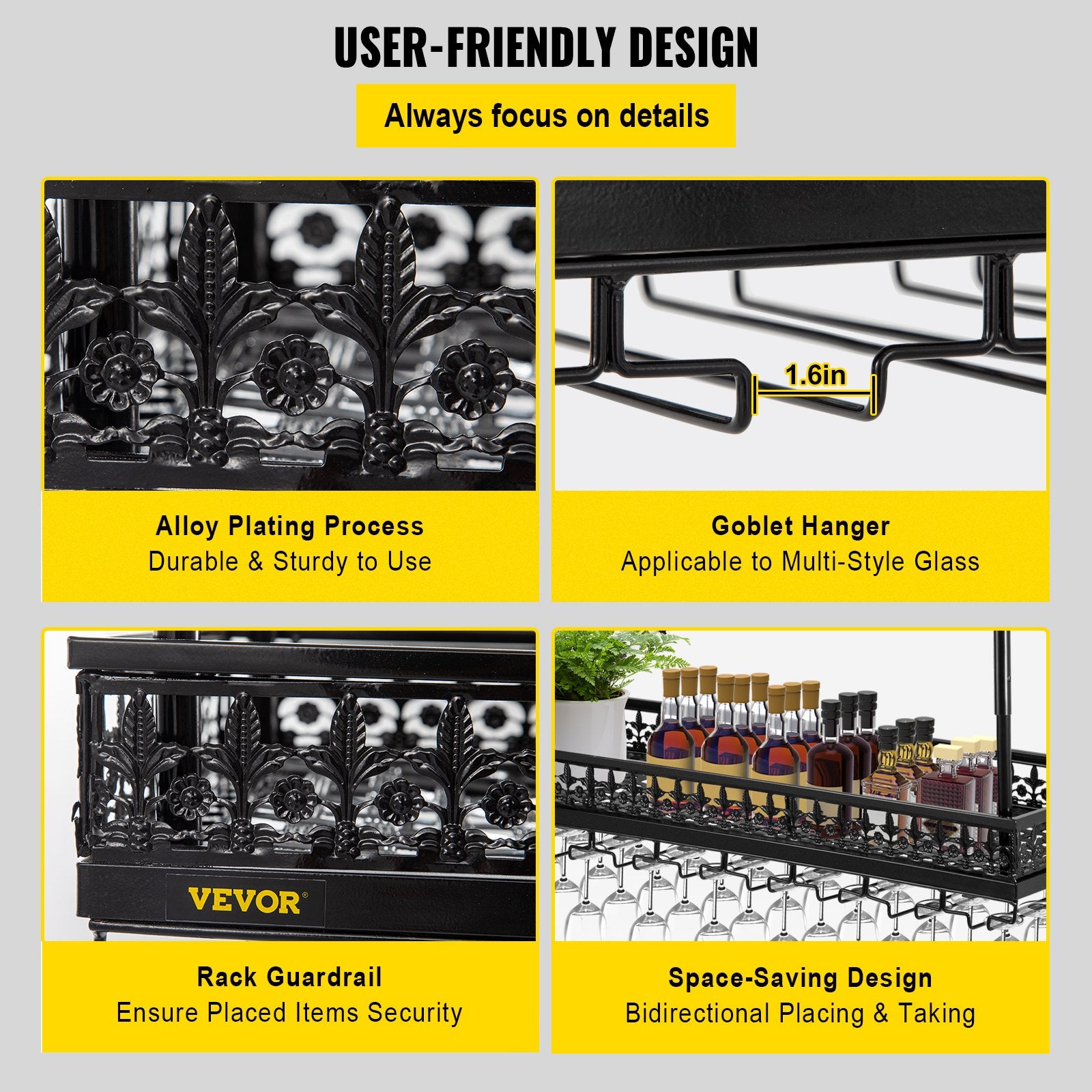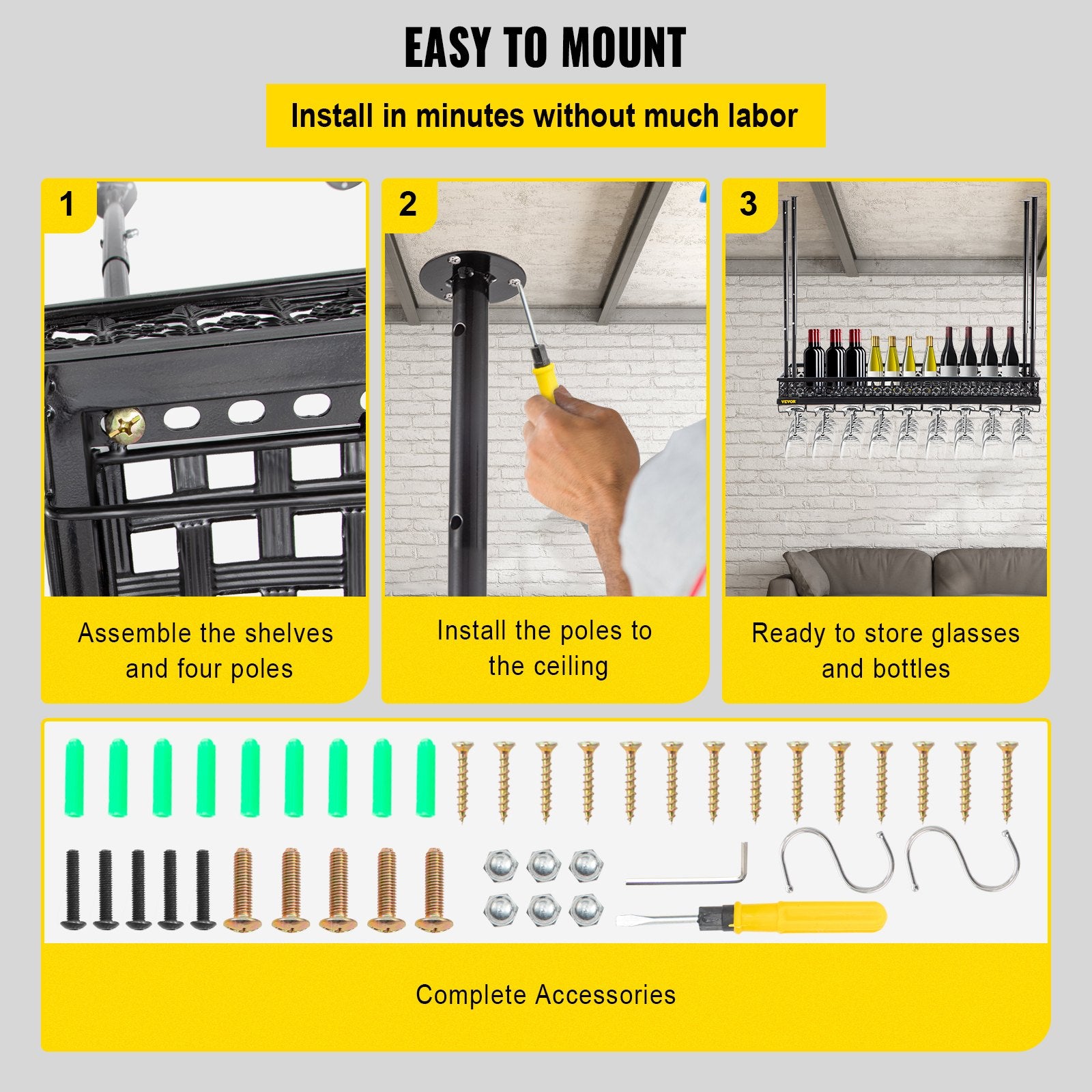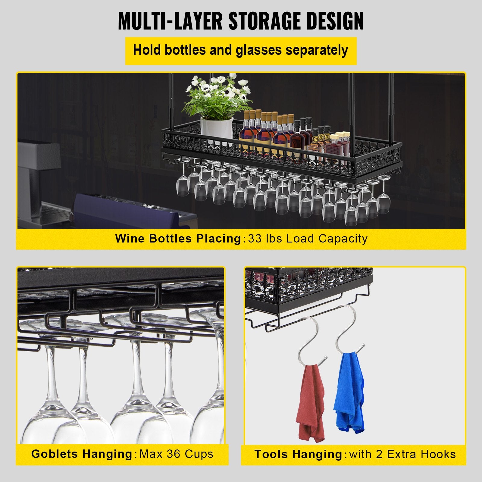 VEVOR Ceiling-Mounted Bar Wine Rack Wine Glass Hanging Rack 35.8x13in Black