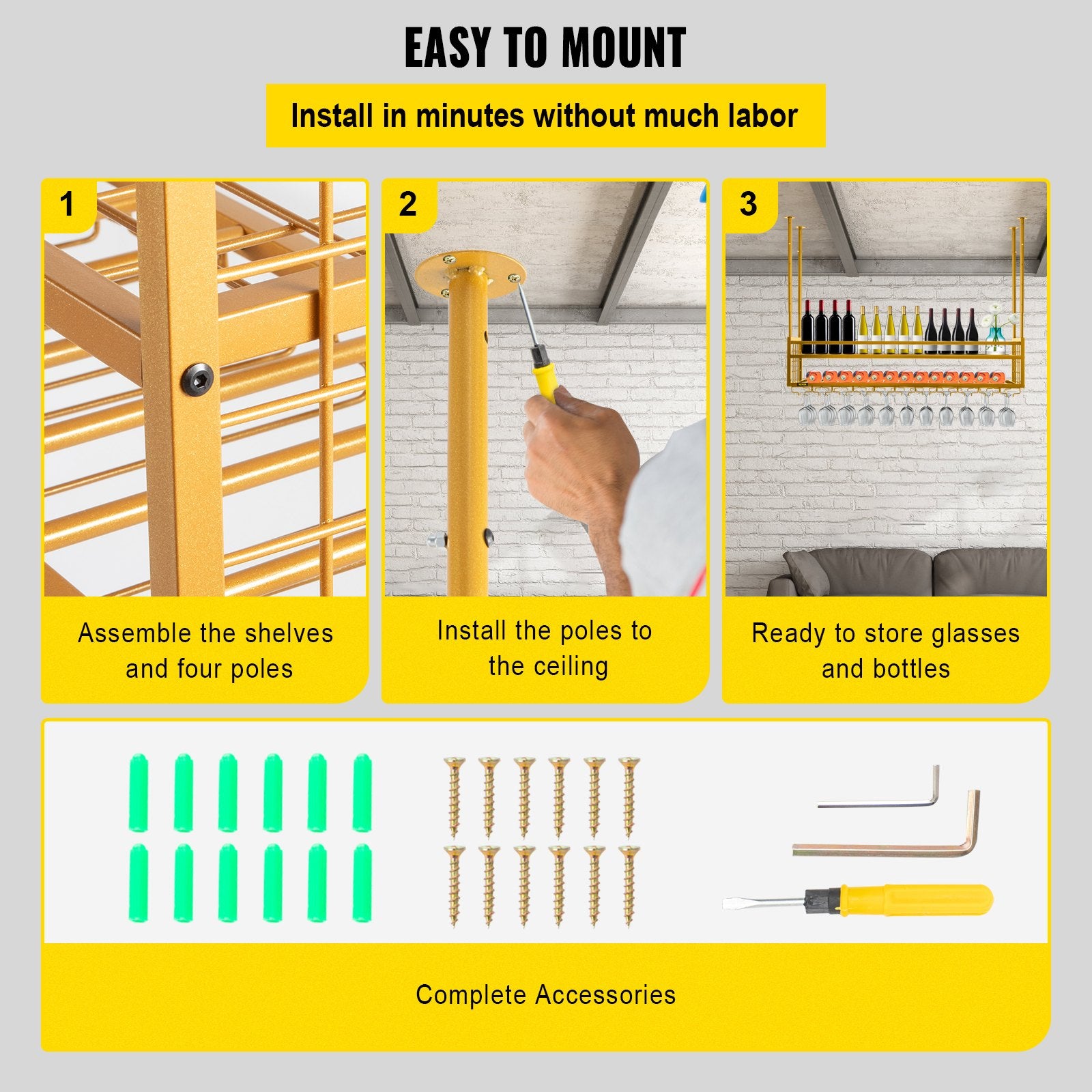 VEVOR Ceiling-Mounted Bar Wine Rack Wine Glass Hanging Rack 46.9x11.8in Gold
