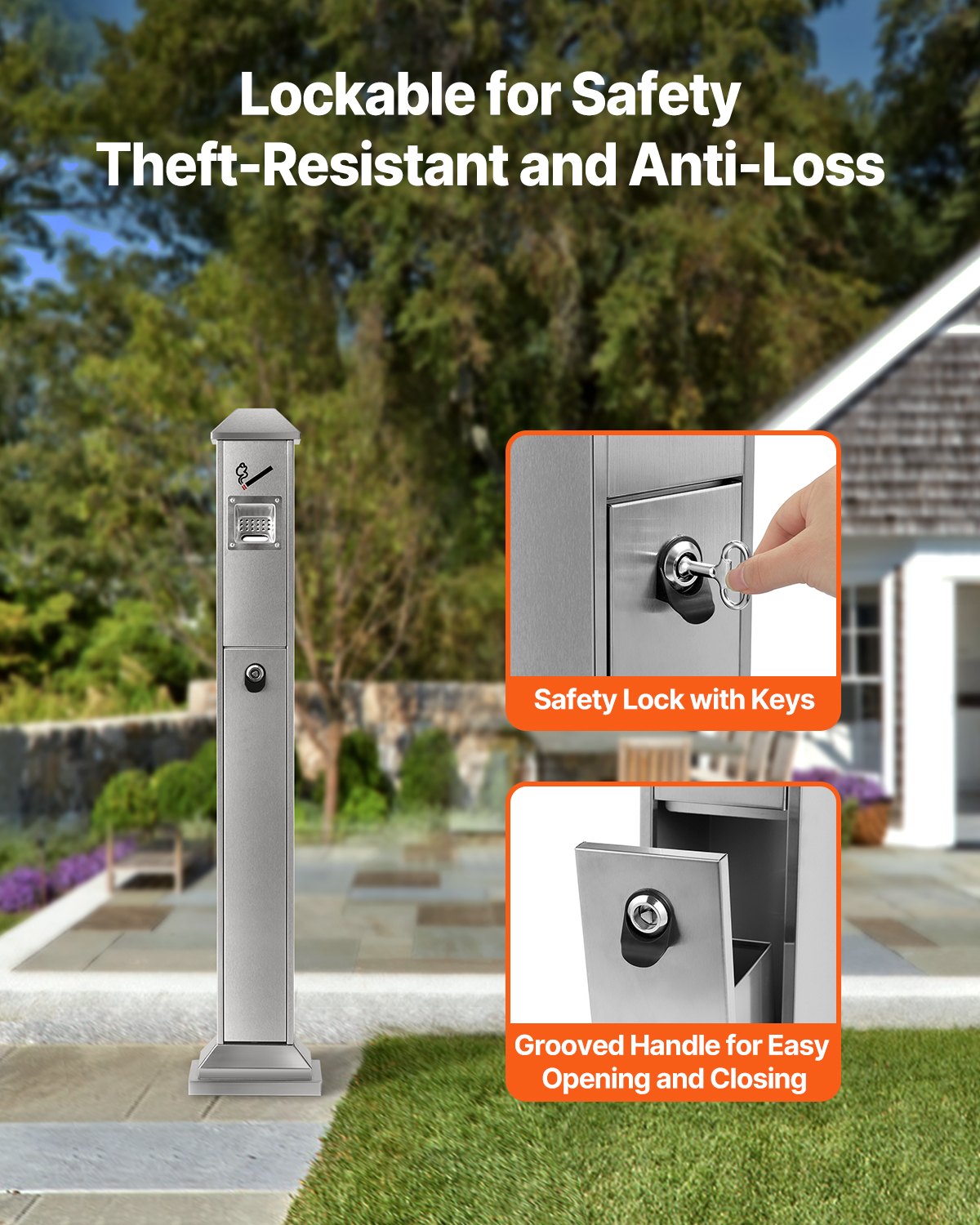 - Weatherproof & Secure: The rainproof top keeps everything dry and fresh, while the built-in security lock and recessed handle make maintenance simple and theft prevention a breeze. This smoking cigarette butt receptacle is built to keep your environment secure and tidy, no matter the weather.
