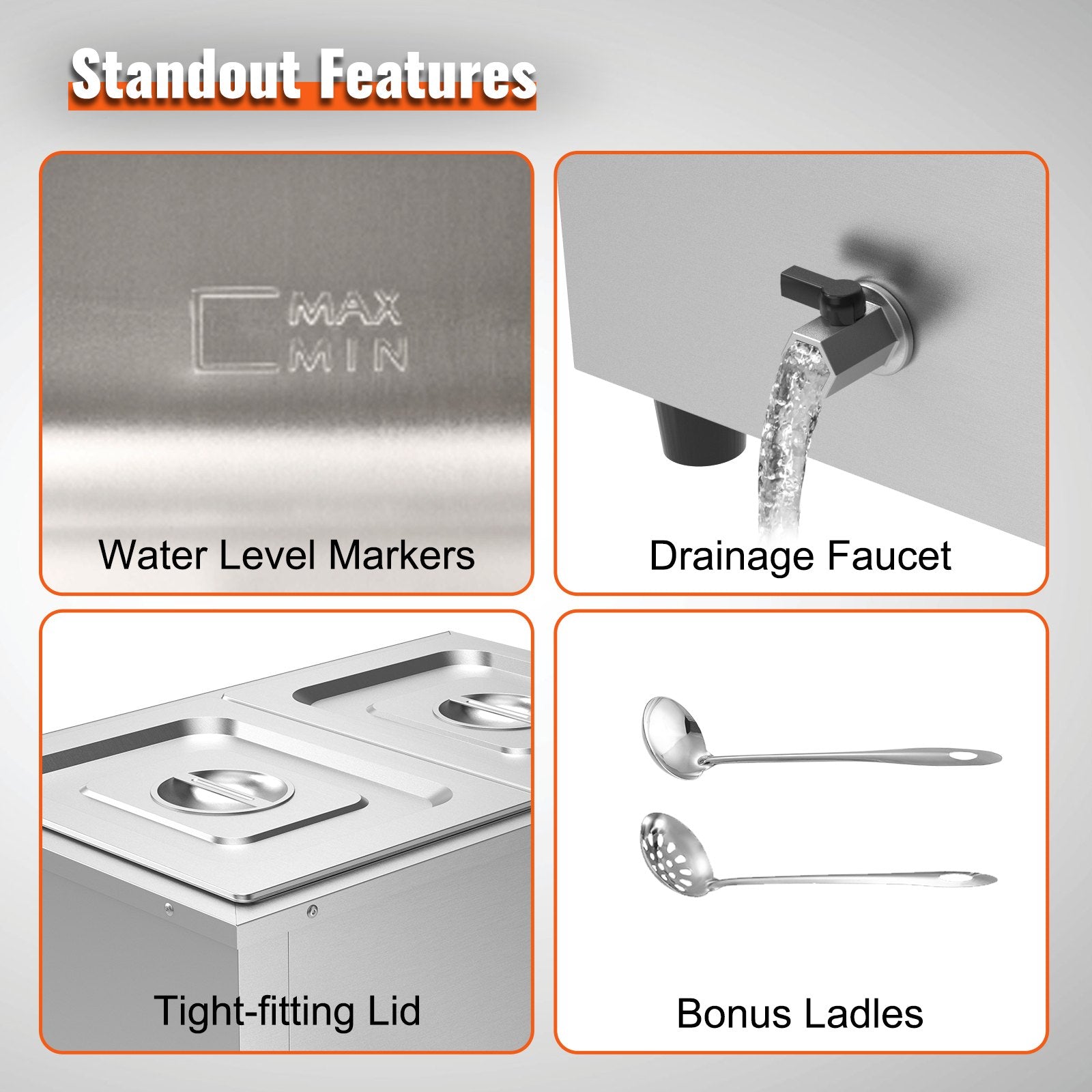 VEVOR Commercial Electric Food Warmer Countertop Buffet 2*12Qt Pan Bain Marie
