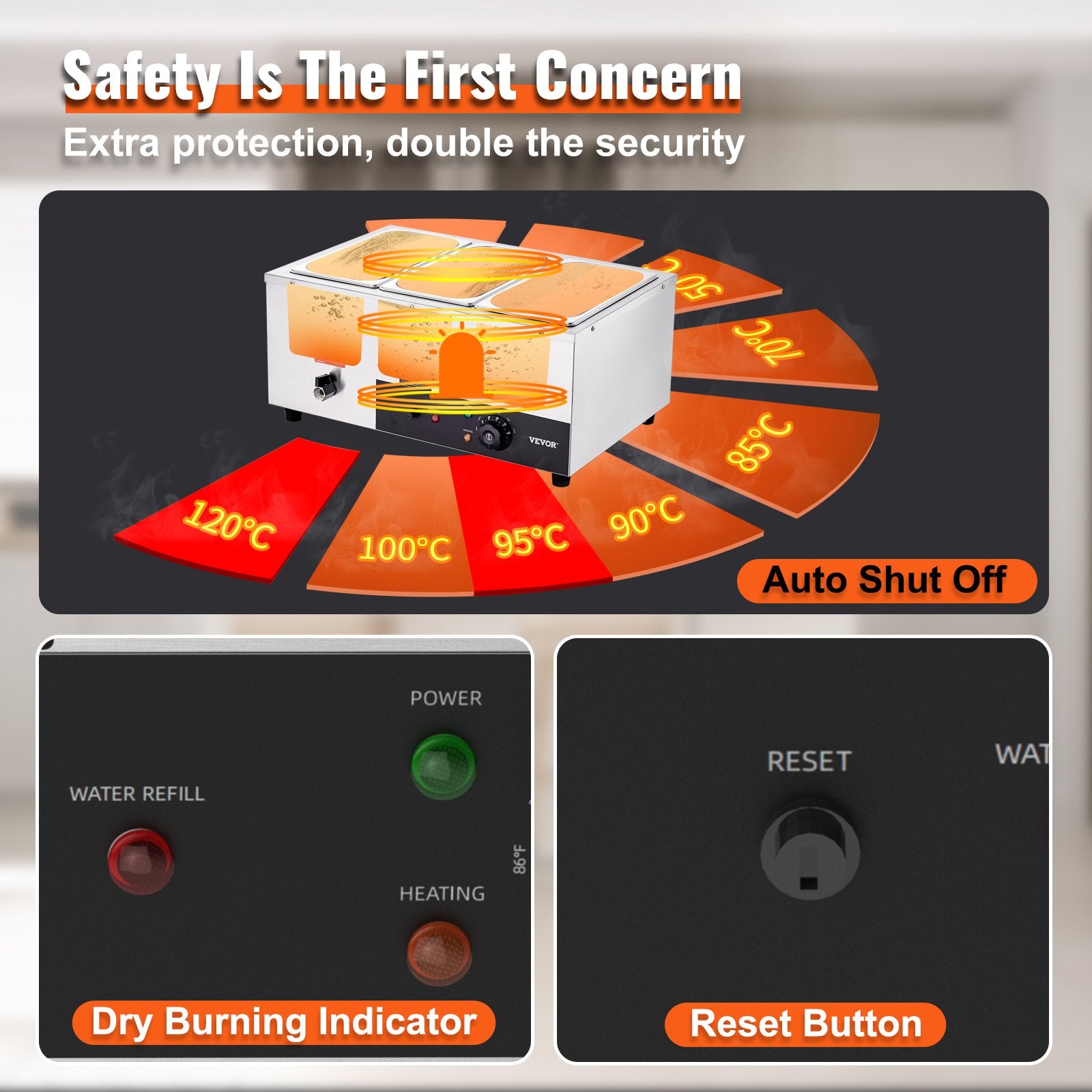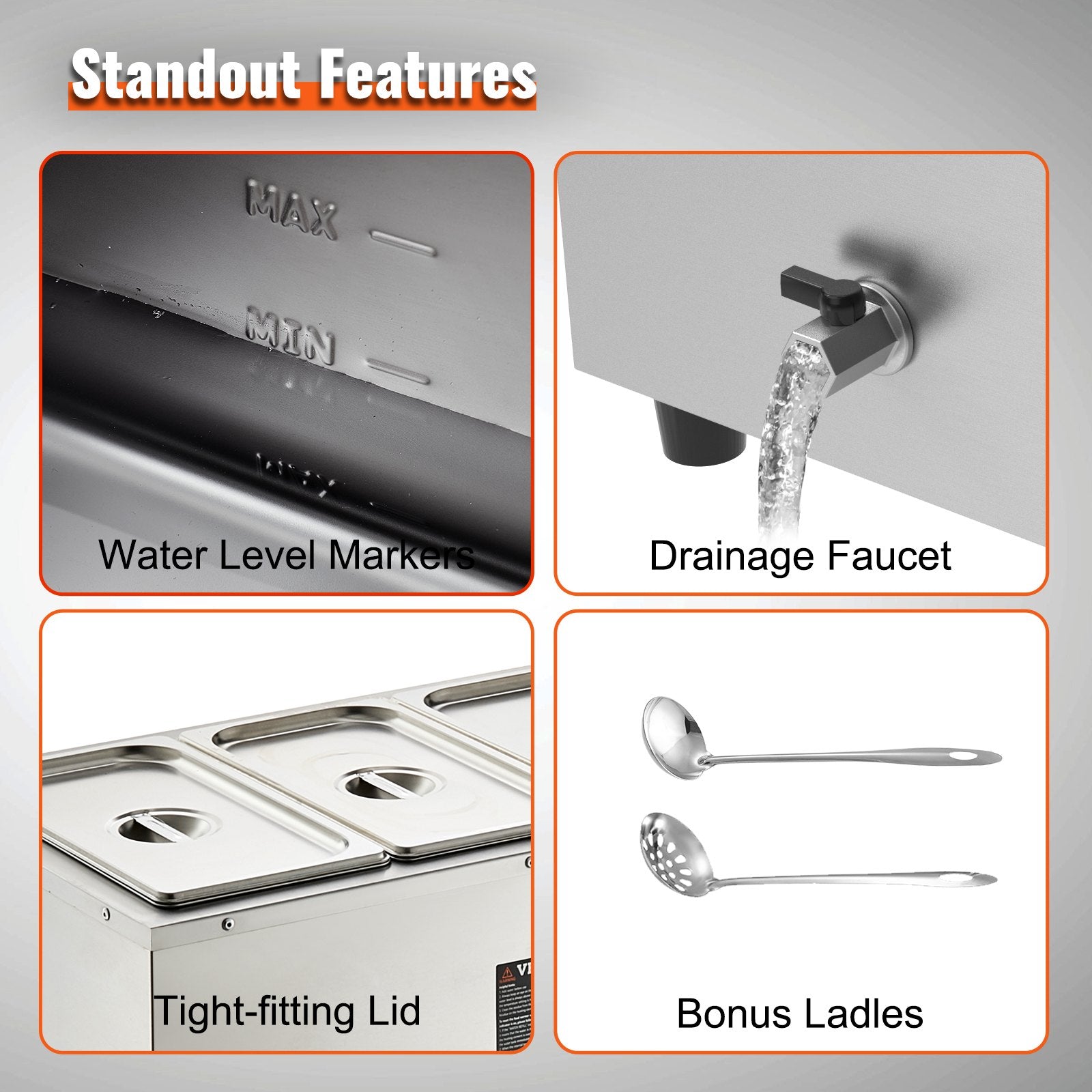 VEVOR Commercial Electric Food Warmer Countertop Buffet 3*8 Qt Pan Bain Marie