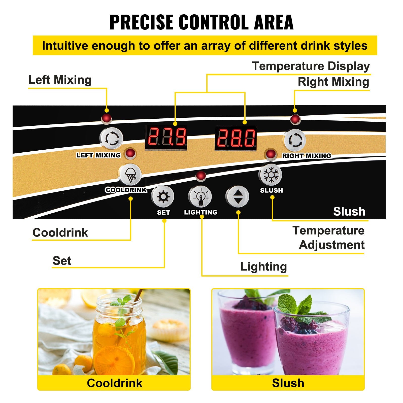 VEVOR Commercial Slush Machine Margarita Slush Maker 2x15L Frozen Drink Machine