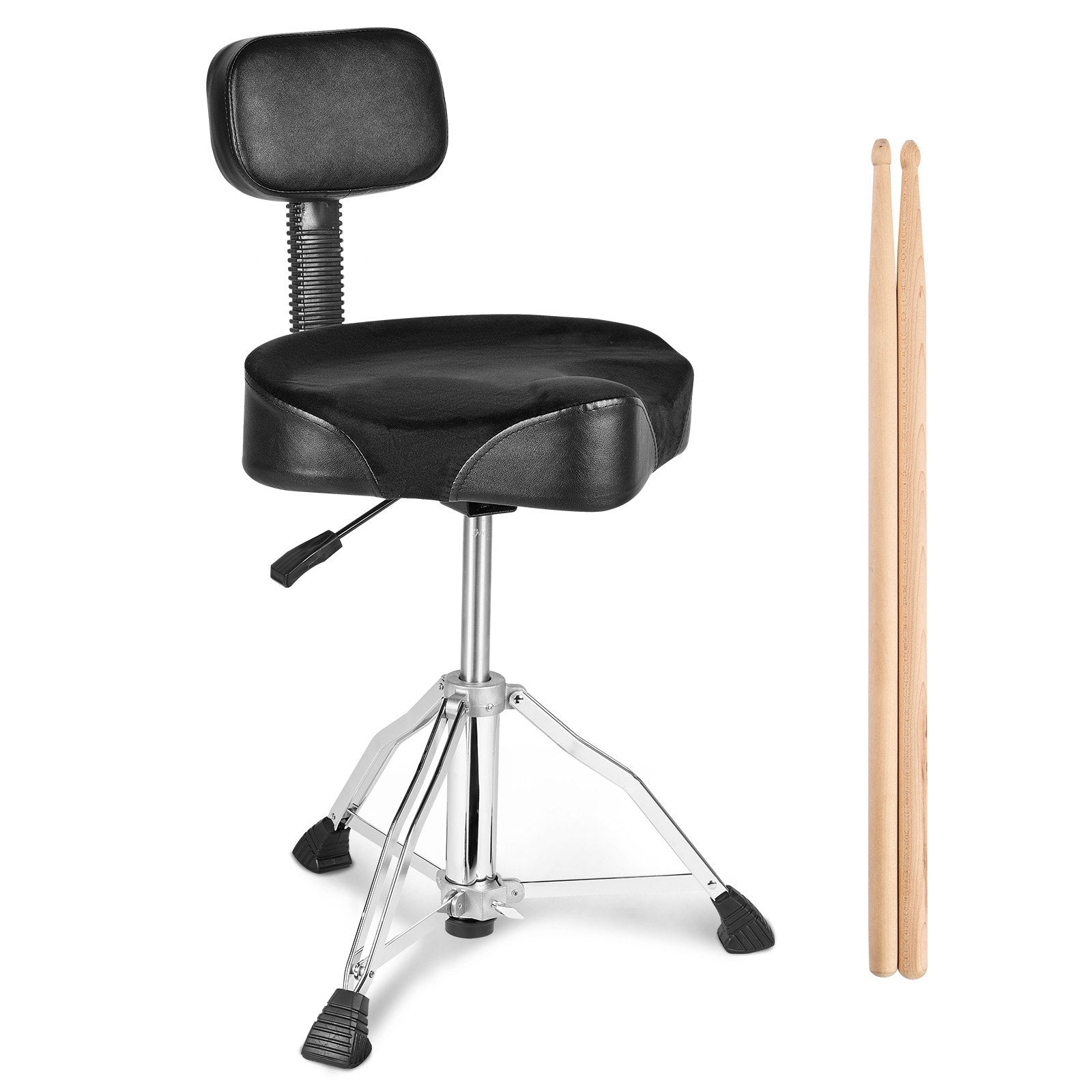 VEVOR Drum Throne with Backrest, 490-640 mm Height Adjustable, Hydraulic Saddle Padded Drum Stool Seat with Anti-Slip Feet Drumsticks 227 kg Max Capacity, 360°Swivel for Drummers