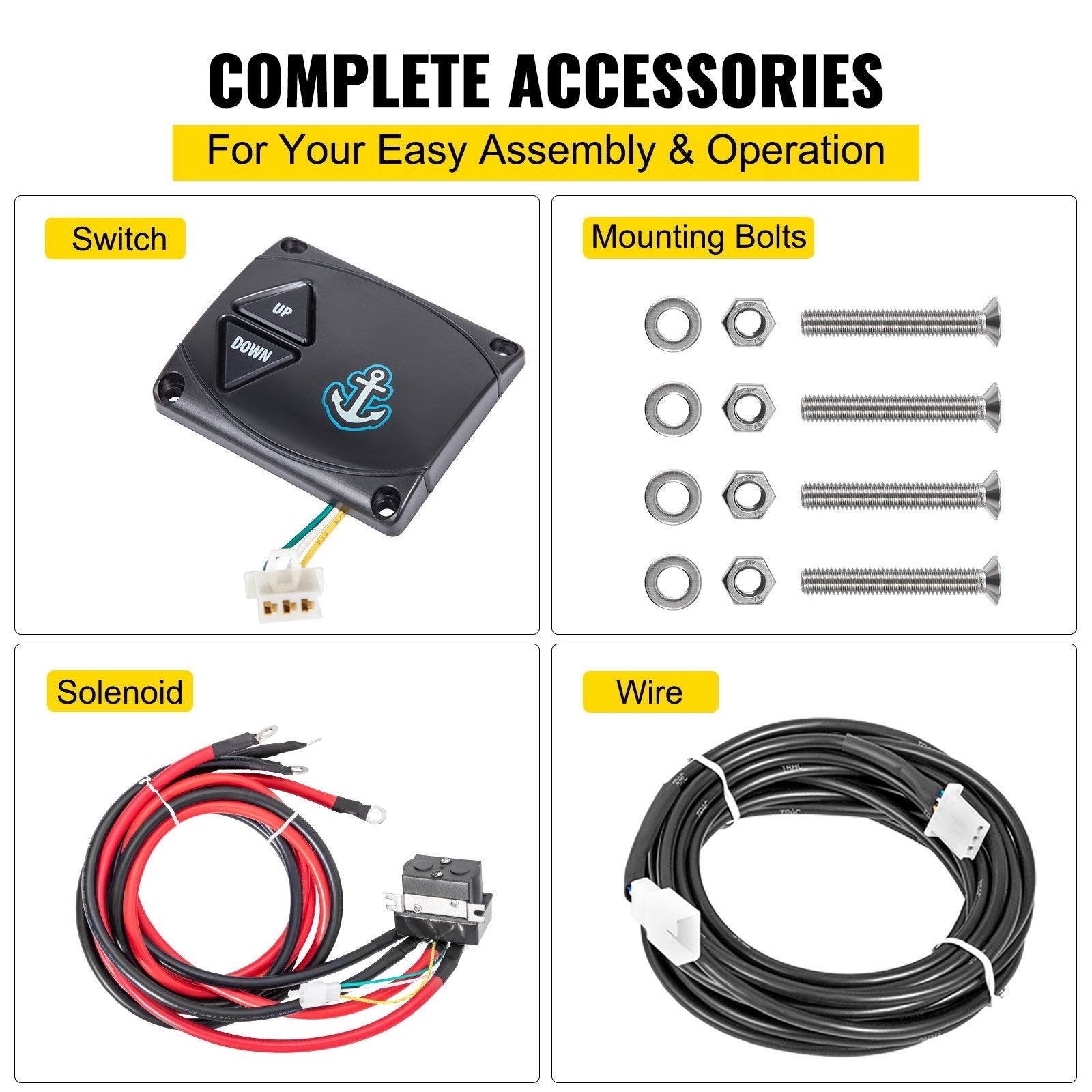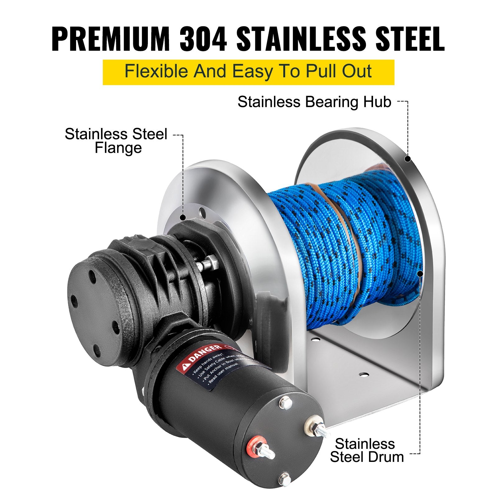 VEVOR Electric Anchor Winch Drum Winch TW180 2500kg Load 6mmX45M Rope Full Kit