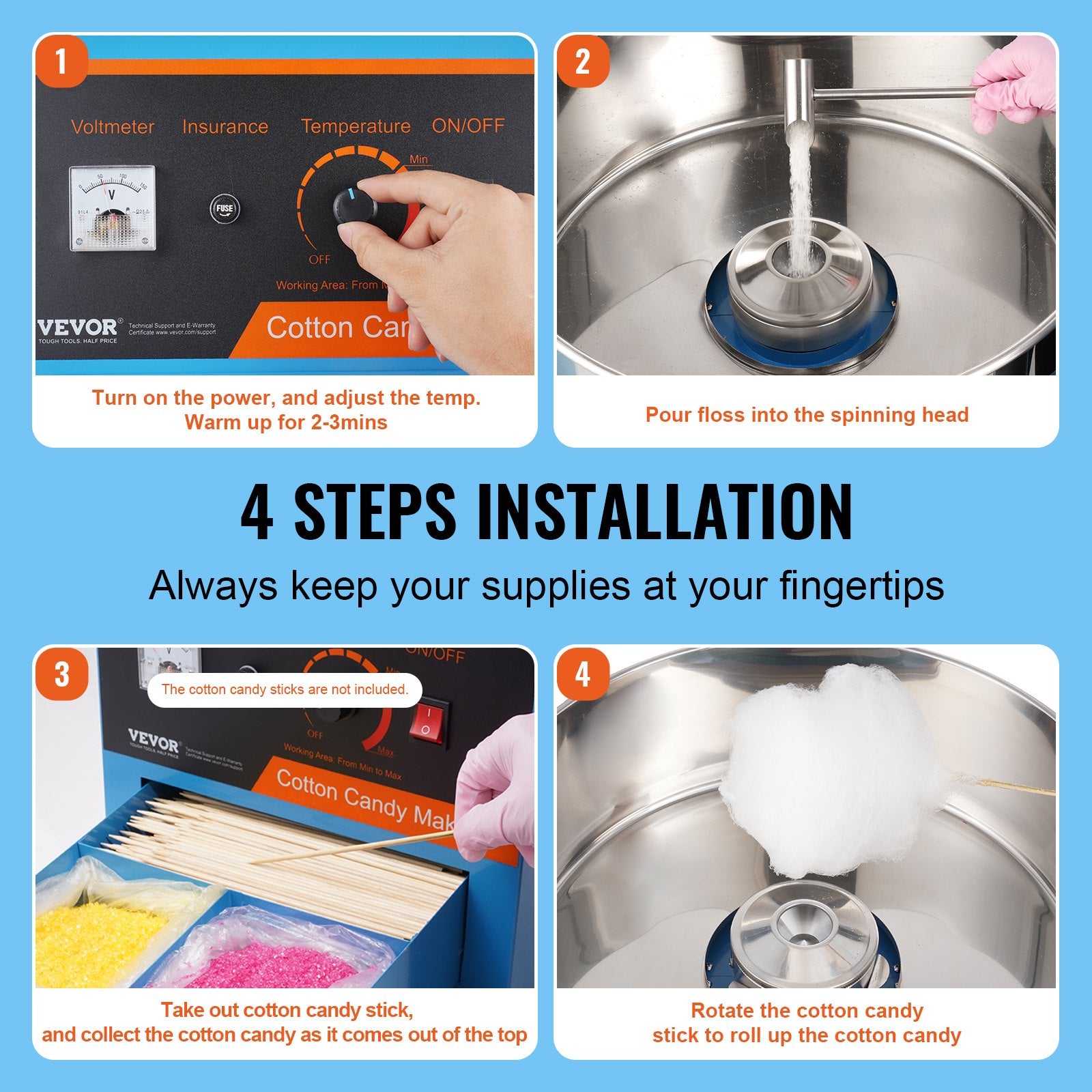 VEVOR Electric Cotton Candy Machine, 1000W Candy Floss Maker, Commercial Cotton