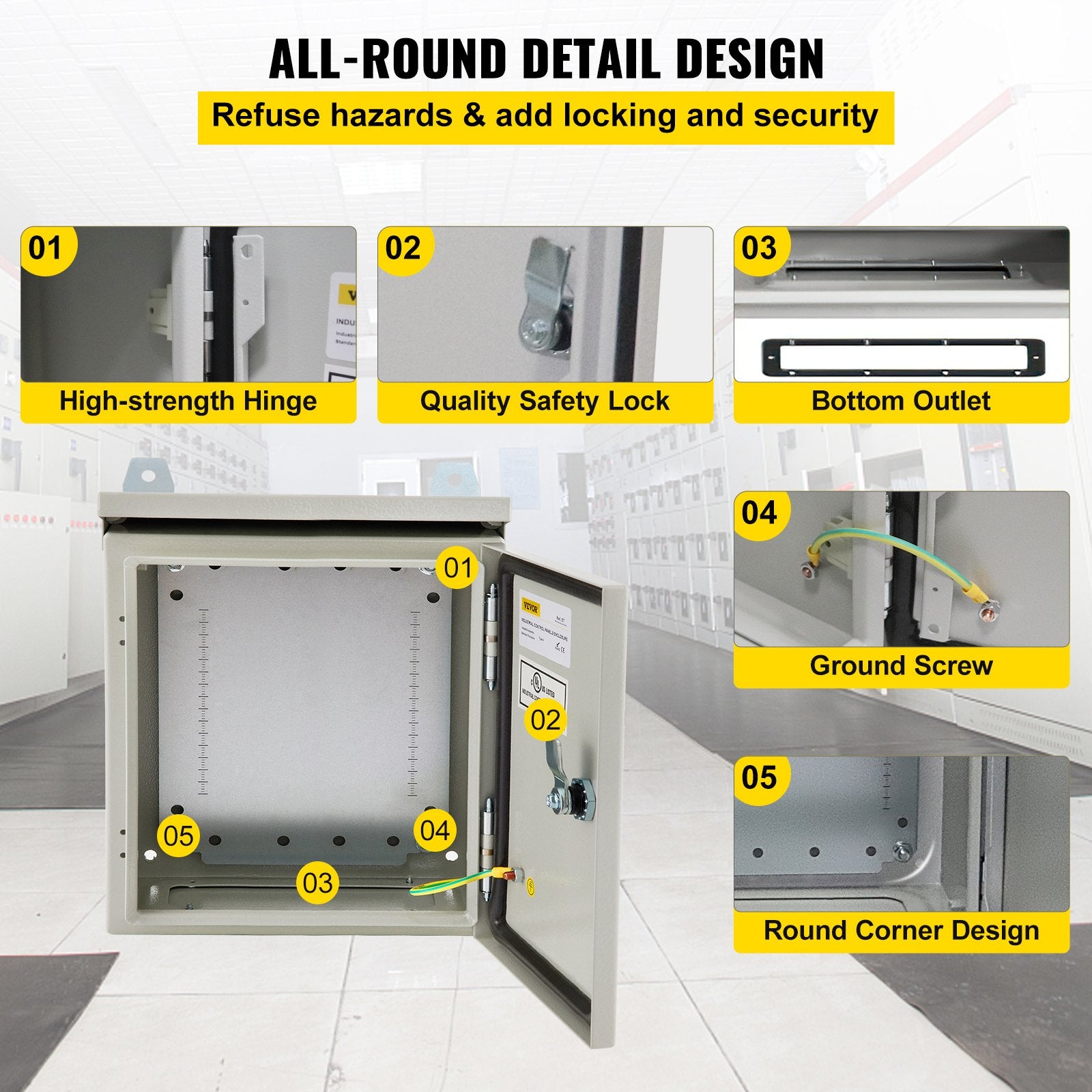 VEVOR Electrical Steel Enclosure Box NEMA 4 Outdoor Enclosure 16 x 16 x 8'' UL