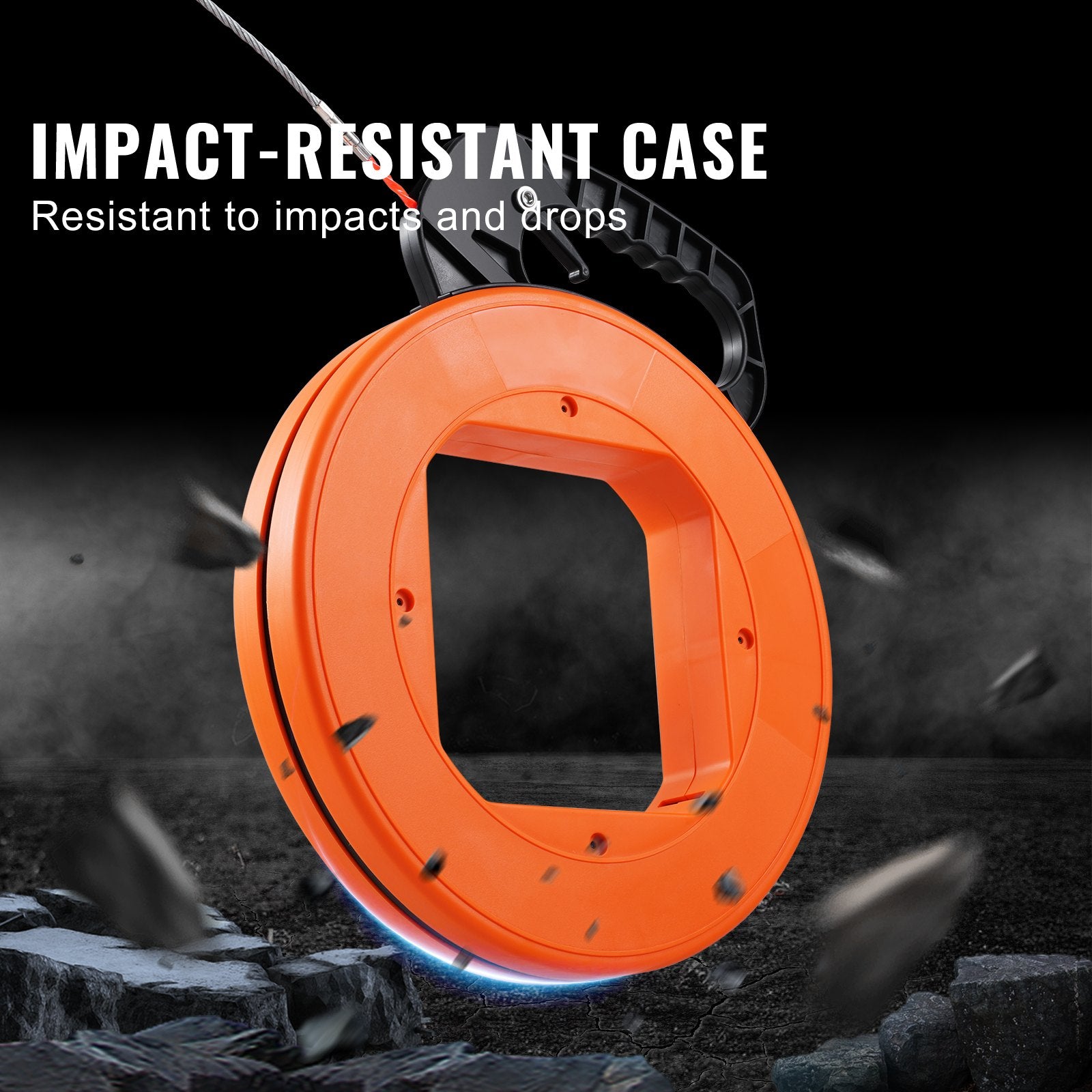 - Impact-Resistant Protection: Constructed with a robust ABS and PP casing, our fishing tape wire puller can withstand everyday drops without cracking. Paired with the handle, it ensures stability and requires less effort when retracting the tape, boosting your productivity.
