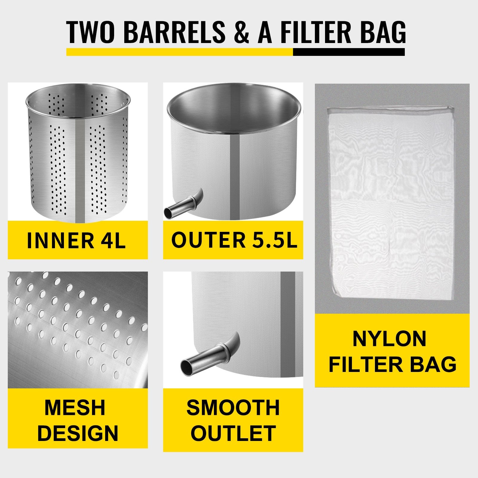 VEVOR Fruit Wine Press, 1.45Gal/5.5L Grape Press for Wine Making, Wine Press Machine with 2 Stainless Steel Barrels, Wine Cheese Fruit Vegetable Tincture Press with T-Handle and 0.1"/3mm Thick Plate