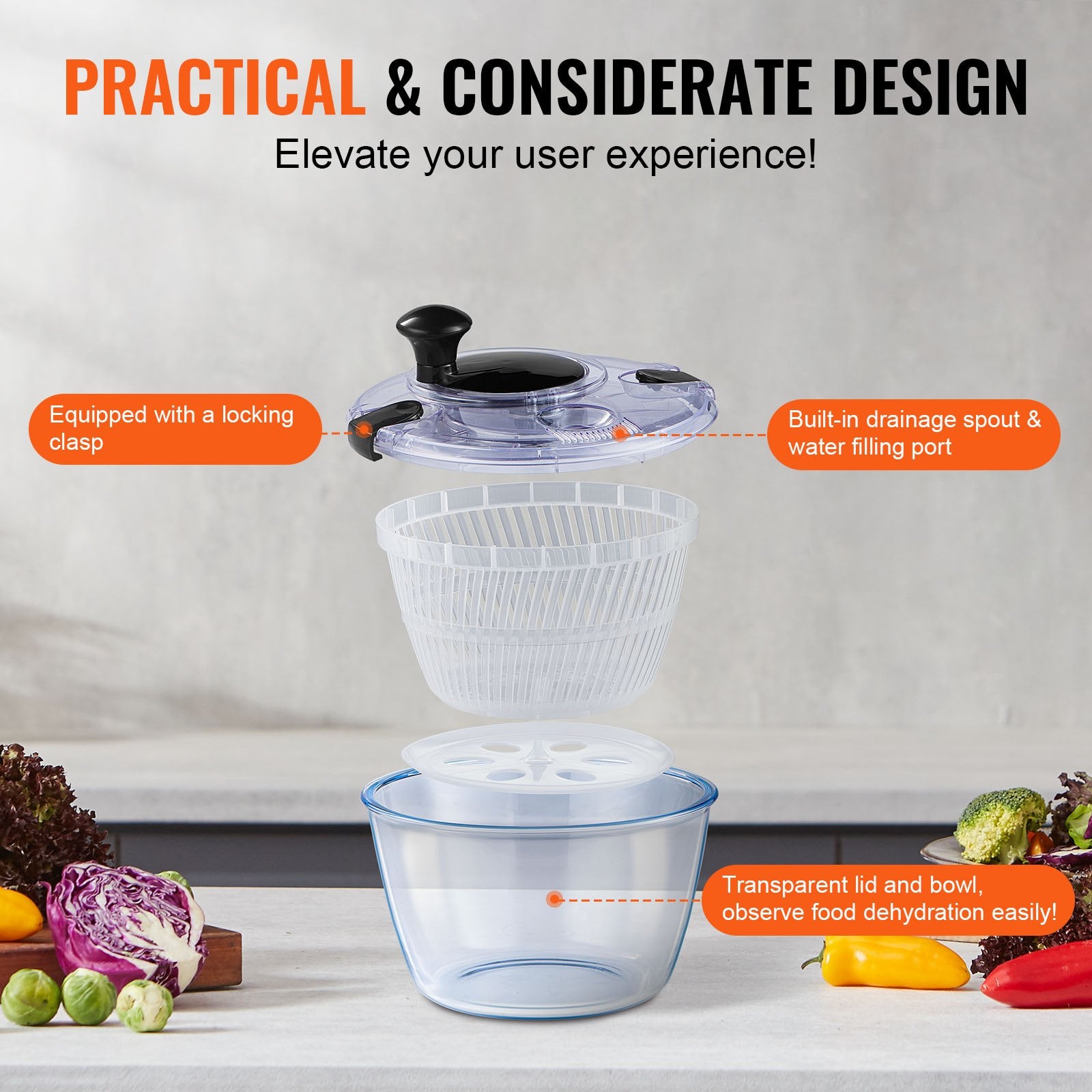 VEVOR Glass Salad Spinner, 4.5L, One-handed Easy Press Large Vegetable Dryer Washer,