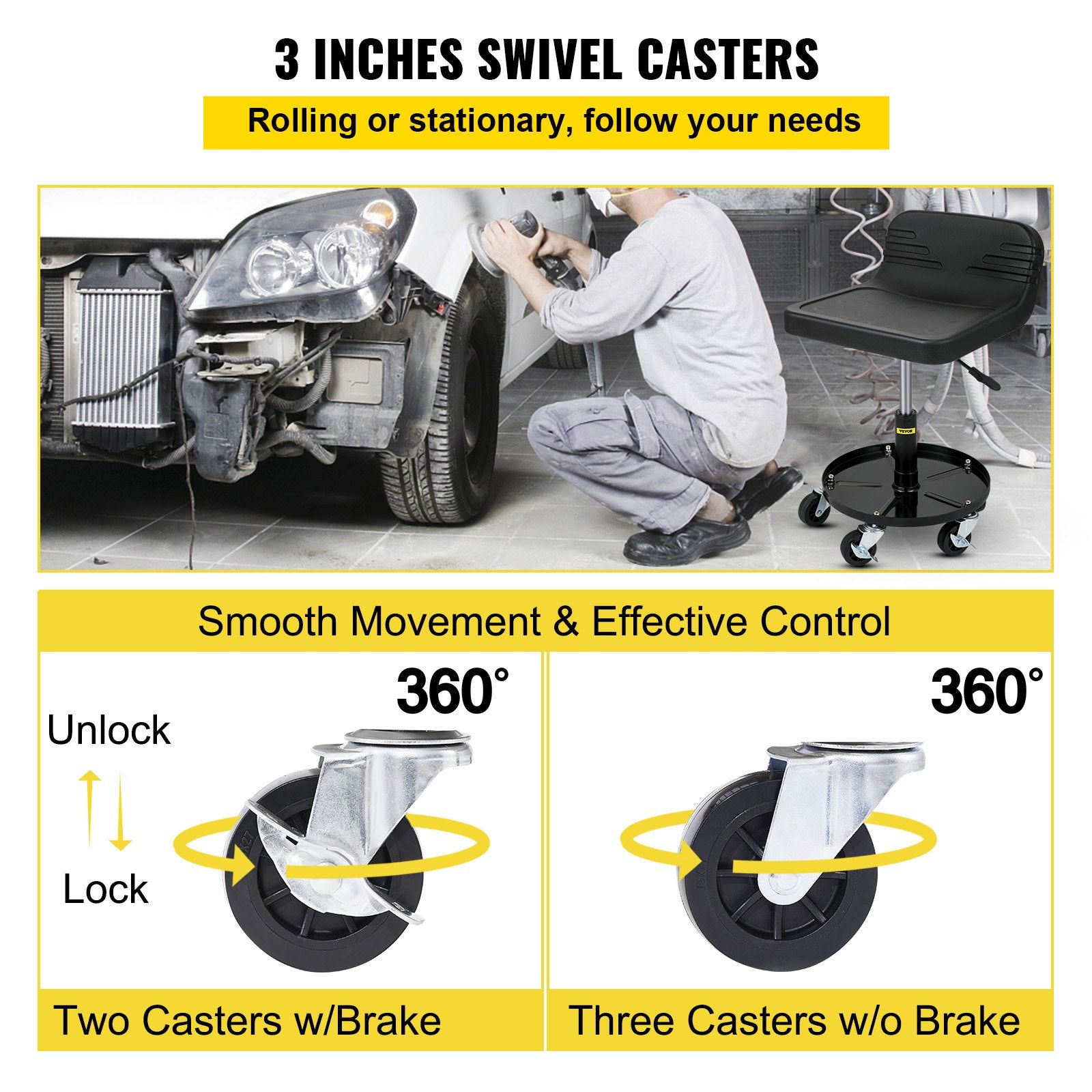 VEVOR Rolling Garage Stool 135KG Adjustable Mechanic Work Shop Seat w/Casters