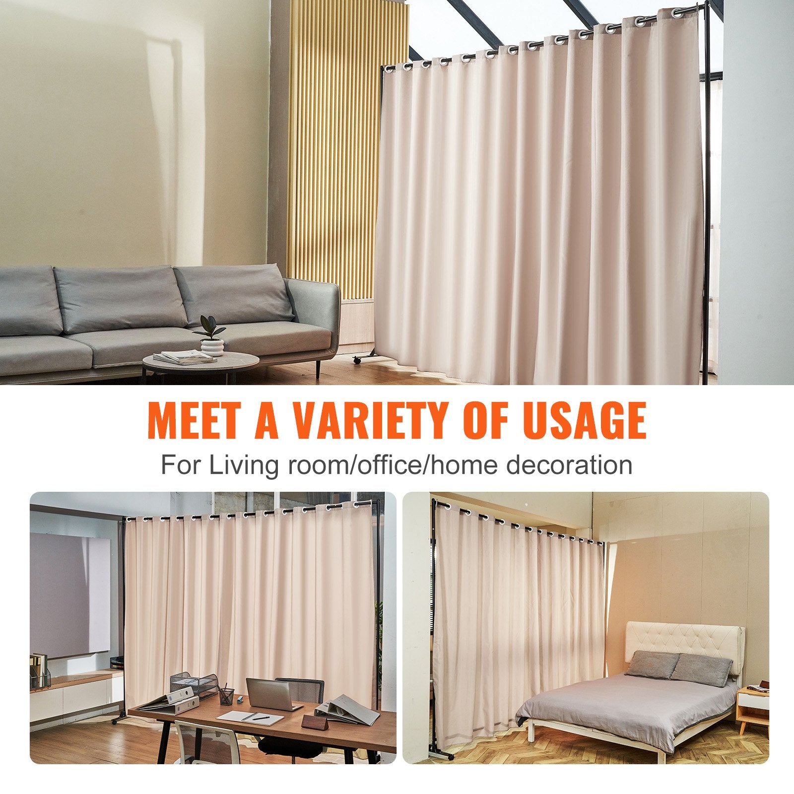 VEVOR Room Divider, 8 ft x 10 ft (96×120inch) Portable Panel Room Divider with Wheels Curtain Divider Stand, Room Divider Privacy Screen for Office, Bedroom, Dining Room, Study, Khaki