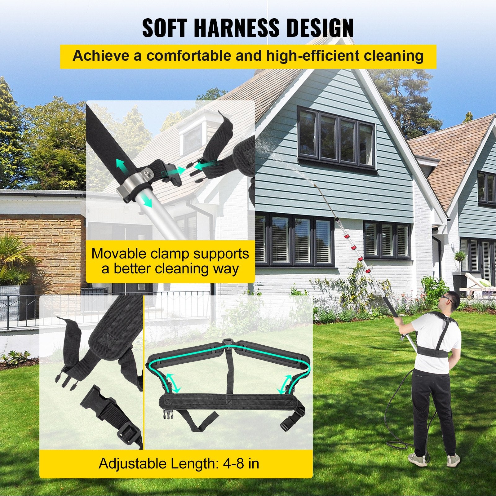 VEVOR Telescoping Pressure Washer Wand, 20 ft 5-Section Length Adjustable, Max. 4000 PSI Fit for 3/8'' Quick Connection, 5 Spray Nozzles, Belt, for Roof, Fence, Gutter, Silver