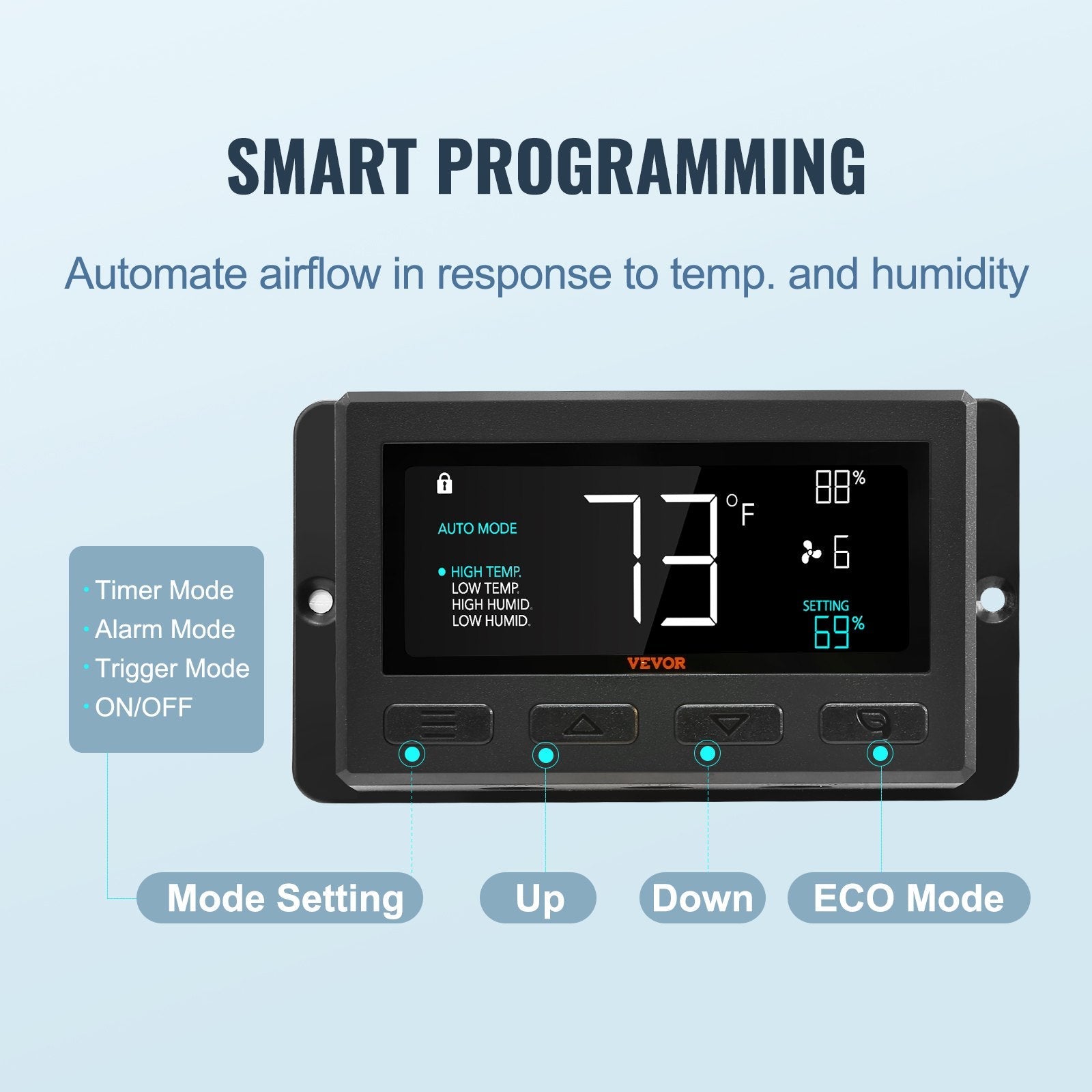 Wall Mount Exhaust Fan with Temp & Humidity Control, 406mm, 1747 CFM, Black