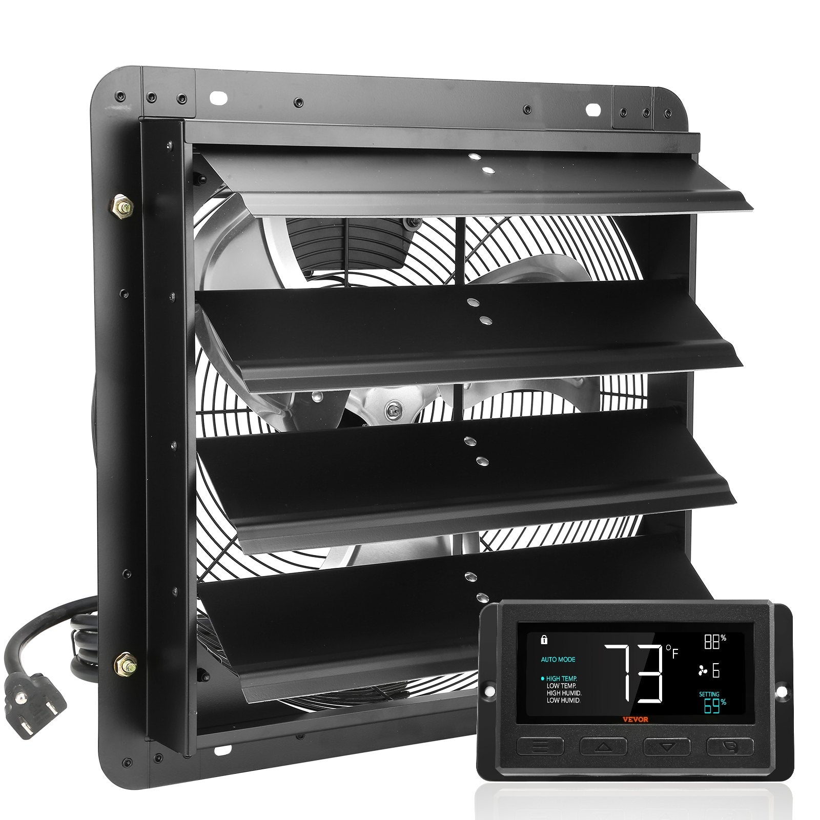 Shutter Exhaust Fan, 406 mm /16inch with Temperature Humidity Controller, EC-motor, 1747 CFM, Variable Speed Adjustable Wall Mount Attic Fan, Ventilation and Cooling for Greenhouses, Garages, Sheds