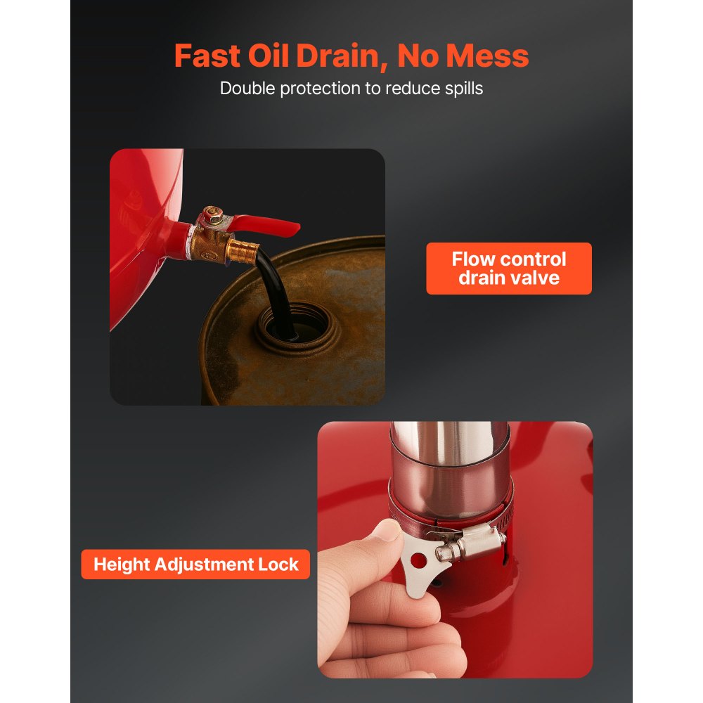 - Height Adjustable: With a range of 26-58 inches, this oil drain adjusts to fit various vehicles, ensuring a tight connection and avoiding leaks. Ideal for workshops, 4S stores, or DIY garages