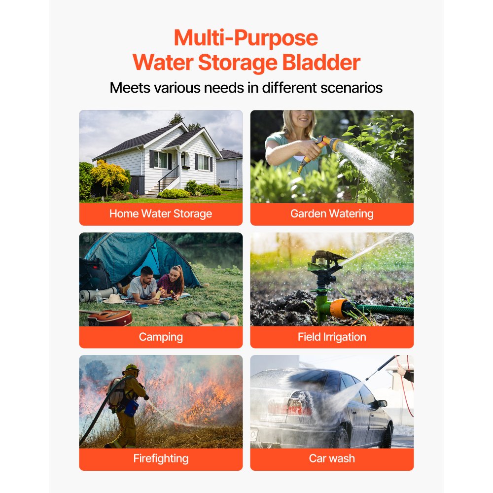 - 63.4 Gal Large Capacity: Boasting a 63.4-gallon (240L) extra-large capacity, this water storage bladder is perfect for home use, camping, garden watering, RV setups, drought resistance, and emergency water supply. Foldable and portable, easy to take anywhere