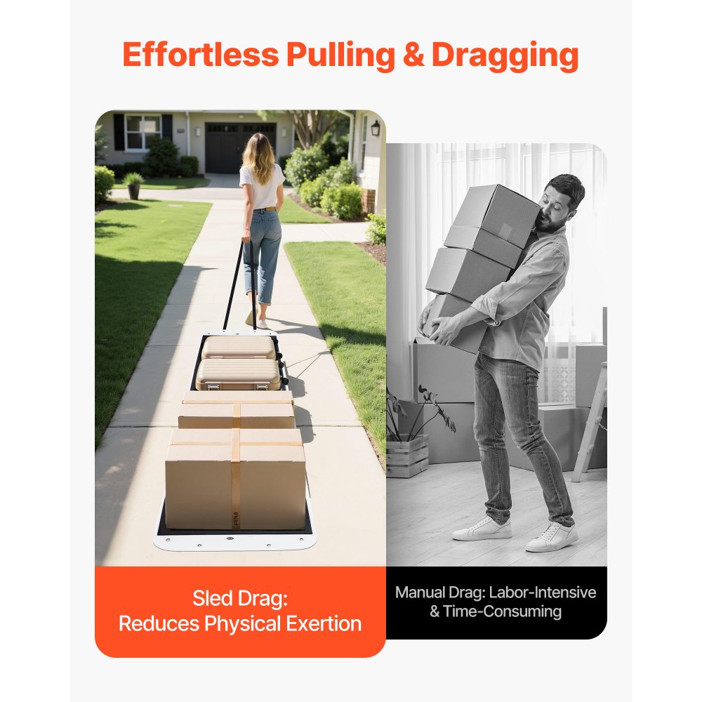 - Effortless Towing: Equipped with two high-strength webbing straps, the utility sled offers strong pulling power, ensuring easy movement of heavy items without effort, saving time and energy during transportation.